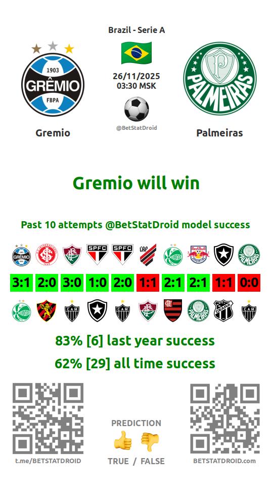 ✔ Gremio lost under 2,5 goals in each of 18 last games