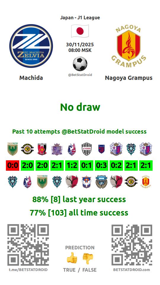 ✔ Nagoya Grampus scores under 2,5 goals in each of 10 last games