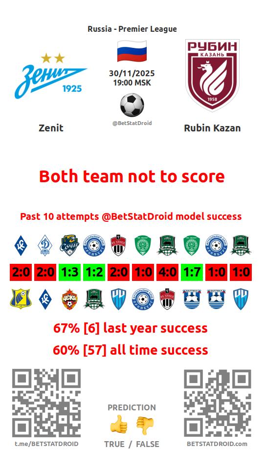 ✔ Rubin Kazan not scores in each of 3 last games