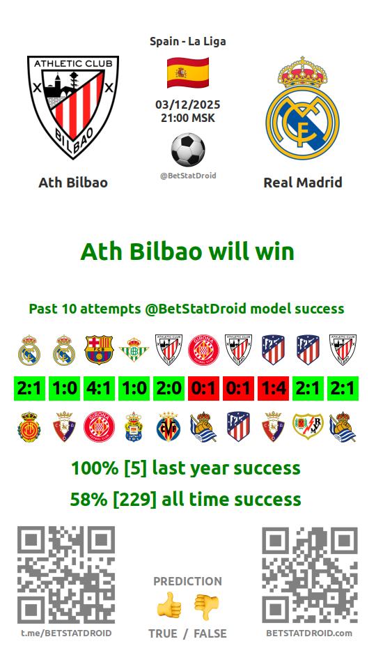 ✔ Ath Bilbao lost under 1,5 goals in each of 6 last games