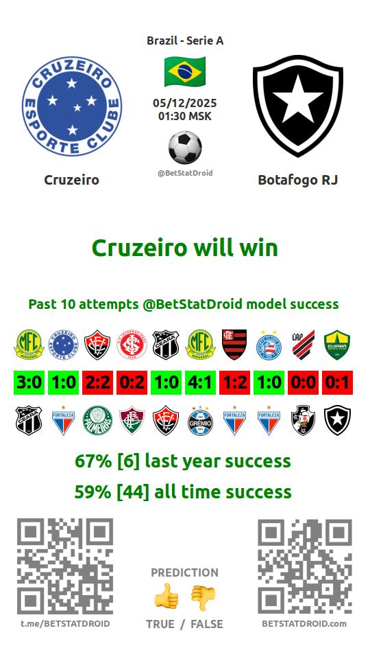 ✔ Cruzeiro lost under 2,5 goals in each of 67 last games