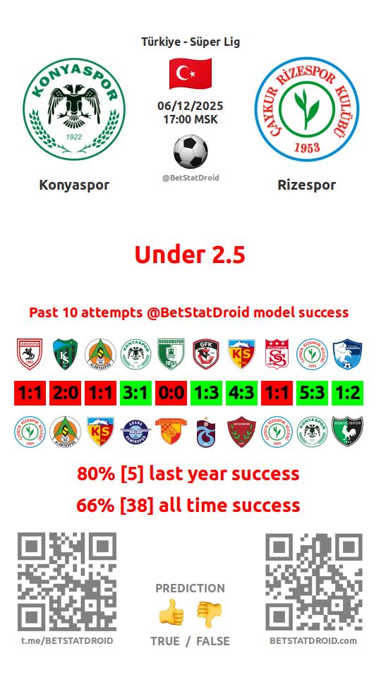 ✔ Konyaspor scores under 2,5 goals in each of 12 last games