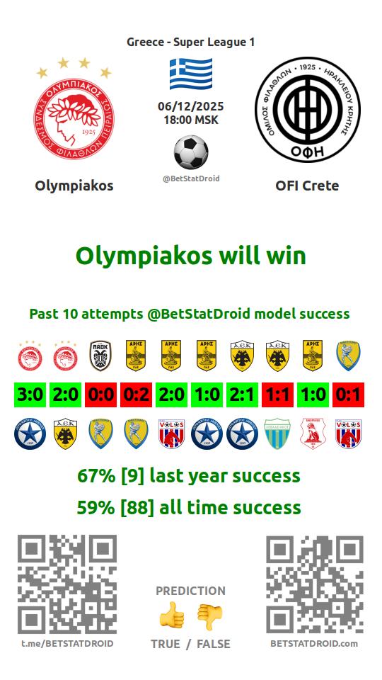 ✔ OFI Crete scores under 1,5 goals in each of 11 last games
