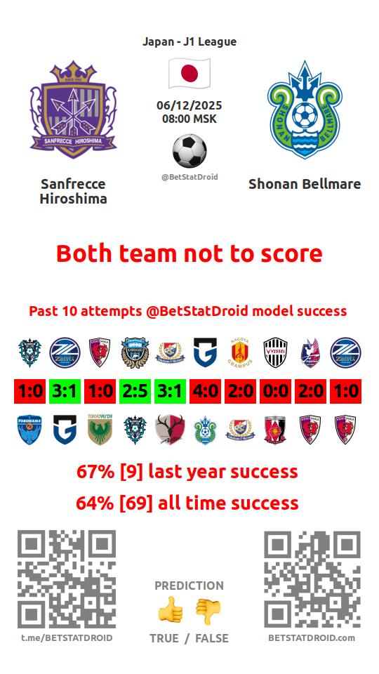 ✔ Shonan Bellmare scores under 1,5 goals in each of 6 last games