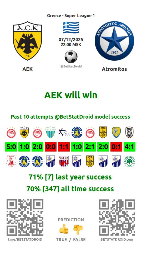 ✔ AEK lost under 2,5 goals in each of 16 last games