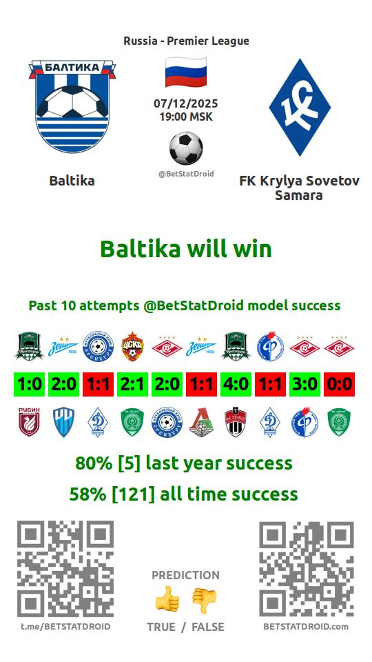 ✔ Baltika lost under 1,5 goals in each of 7 last games