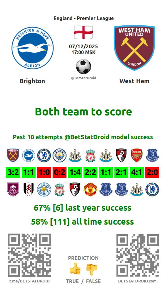 ✔ Brighton scores over 1,5 goals in each of 6 last games