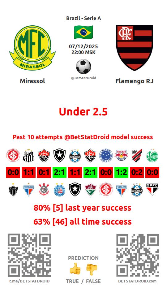 ✔ Mirassol lost under 2,5 goals in each of 12 last games