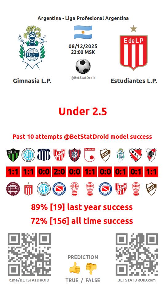 ✔ Gimnasia L.P. scores under 2,5 goals in each of 8 last games