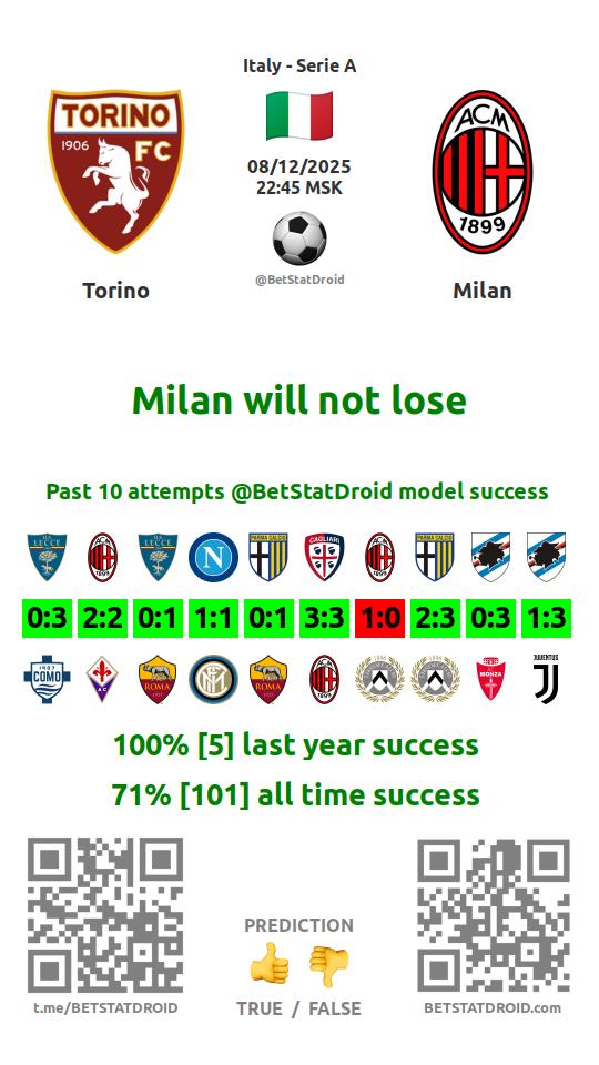 ✔ Torino scores under 2,5 goals in each of 25 last games