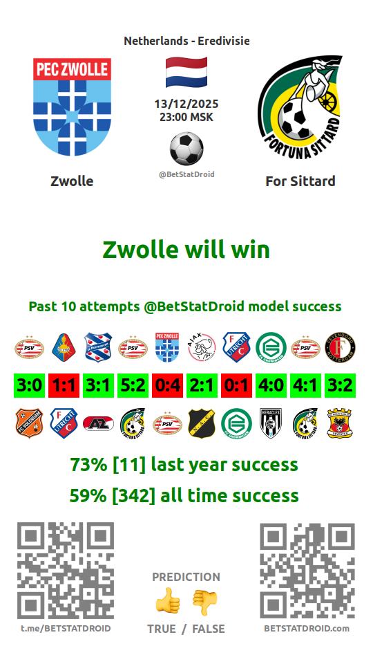 ✔ Zwolle scores under 2,5 goals in each of 13 last games