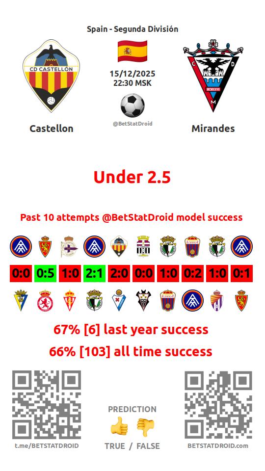 ✔ Mirandes scores under 2,5 goals in each of 13 last games