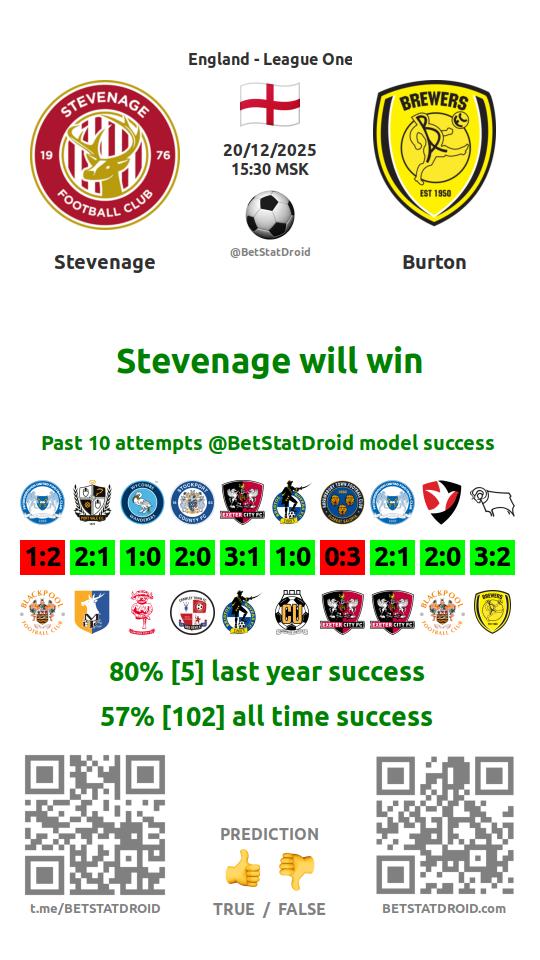 ✔ Stevenage lost under 1,5 goals in each of 10 last games
