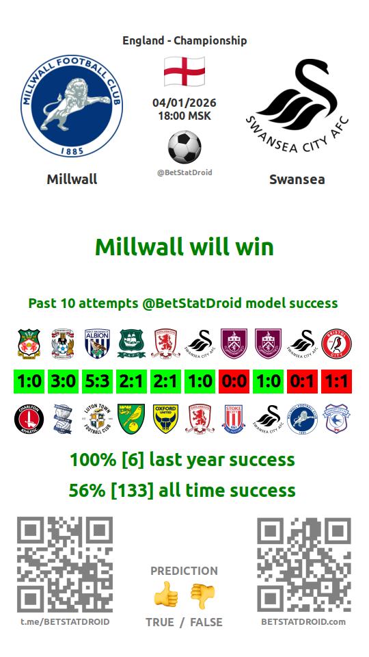 ✔ Millwall scores under 2,5 goals in each of 8 last games