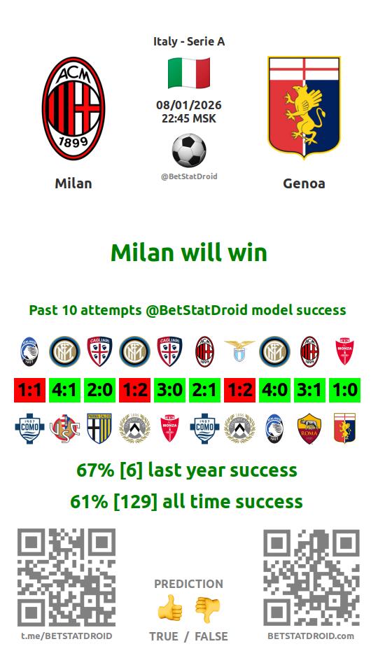 ✔ Milan lost under 2,5 goals in each of 18 last games