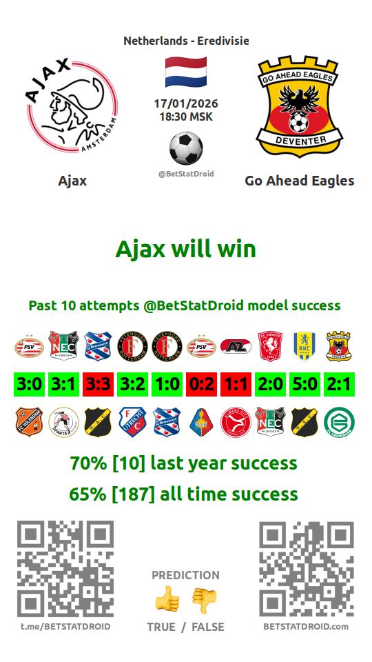 ✔ Ajax scores over 1,5 goals in each of 5 last games