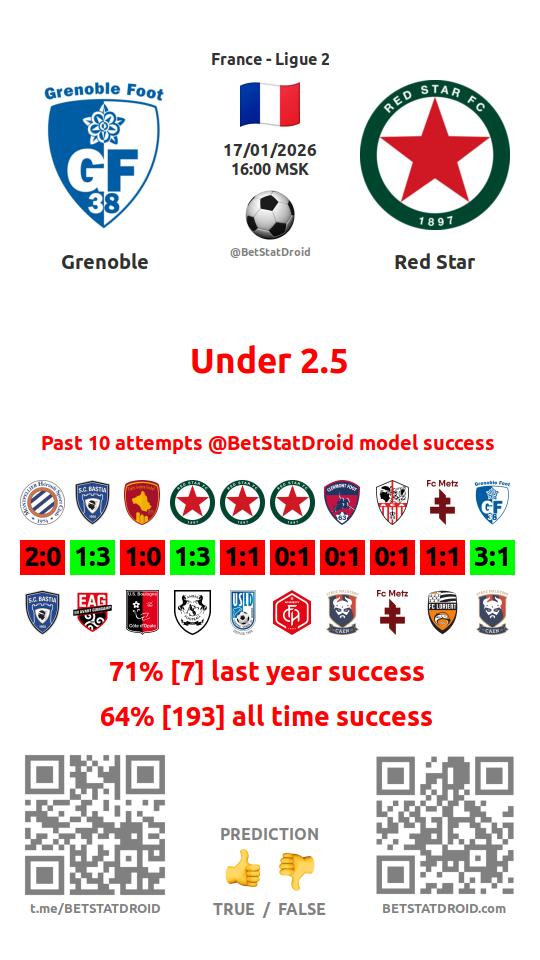 ✔ Grenoble scores under 2,5 goals in each of 9 last games