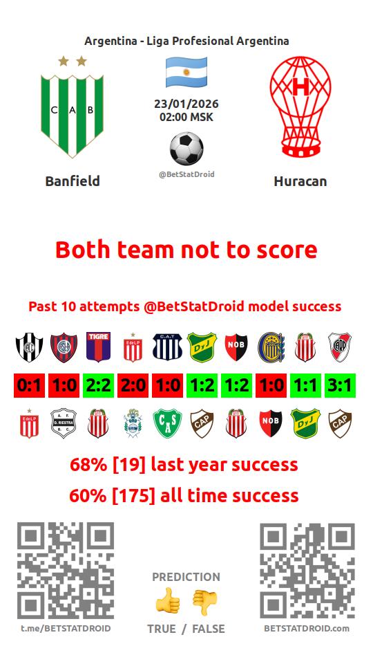 ✔ Banfield scores under 1,5 goals in each of 7 last games