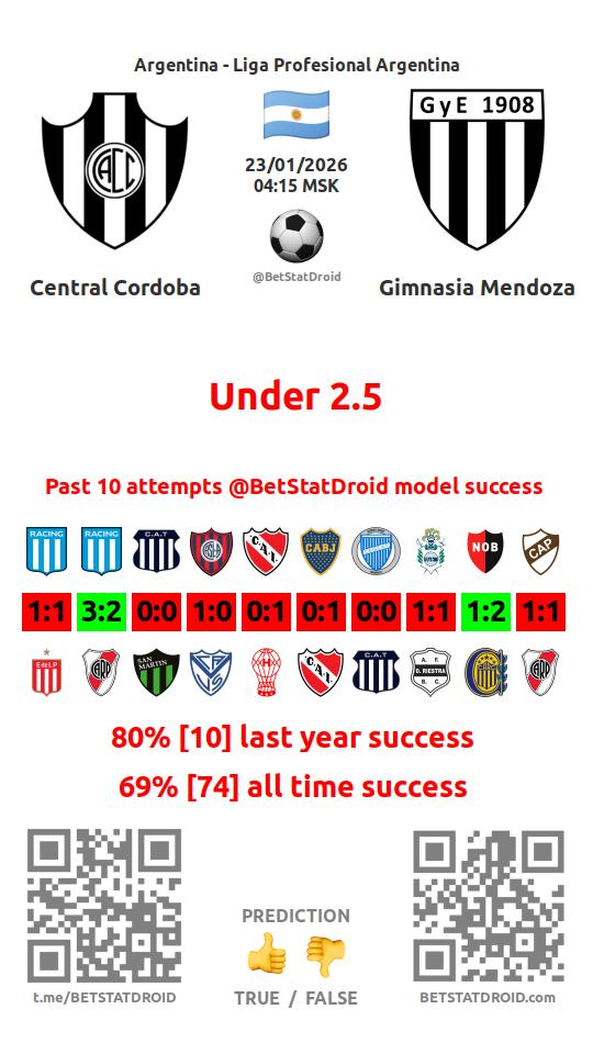 ✔ Central Cordoba lost under 2,5 goals in each of 19 last games