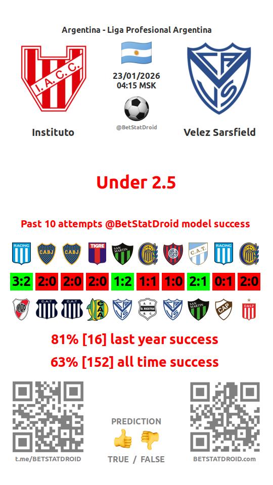 ✔ Velez Sarsfield scores under 2,5 goals in each of 23 last games
