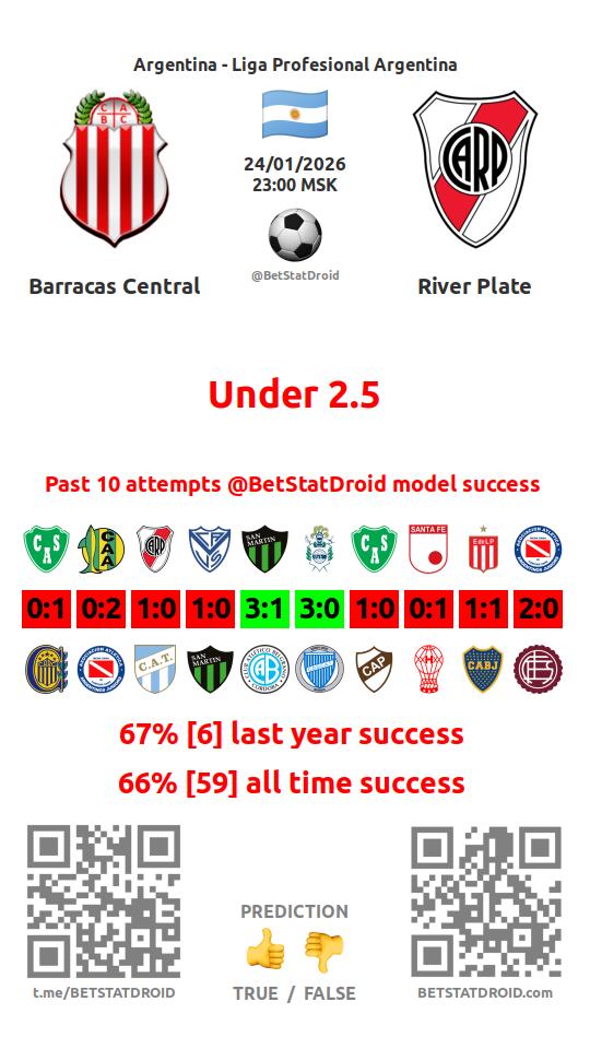 ✔ Barracas Central scores under 2,5 goals in each of 14 last games