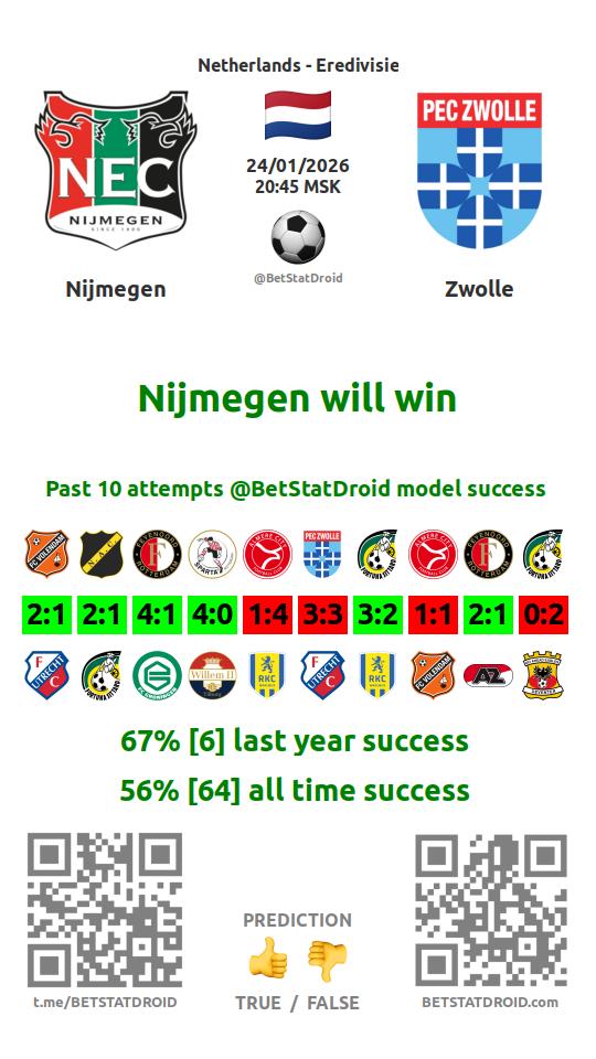 ✔ Nijmegen scores over 1,5 goals in each of 7 last games