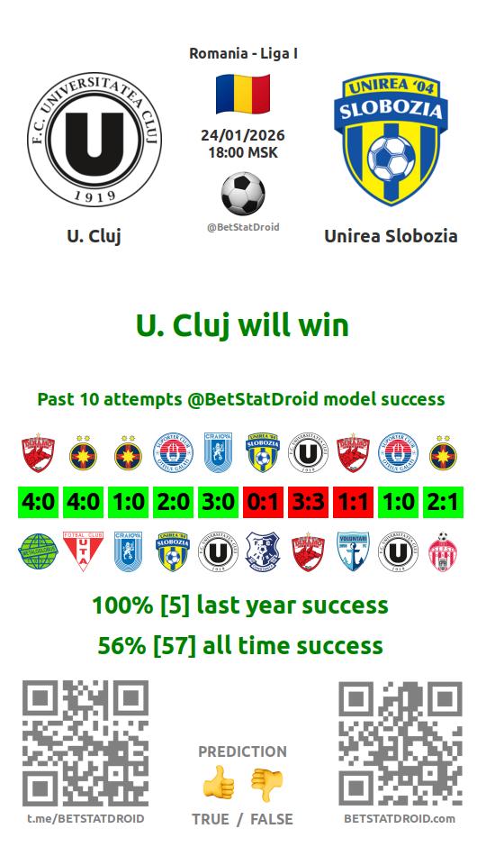 ✔ U. Cluj lost under 2,5 goals in each of 28 last games