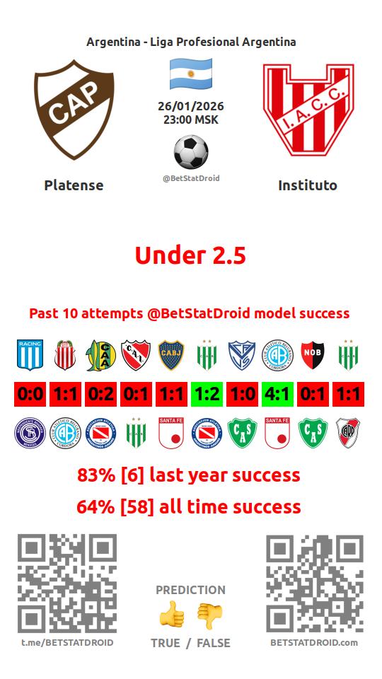 ✔ Instituto scores under 2,5 goals in each of 20 last games