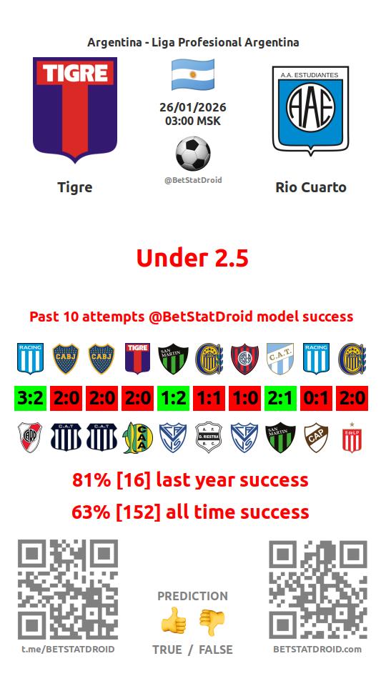 ✔ Tigre lost under 2,5 goals in each of 18 last games