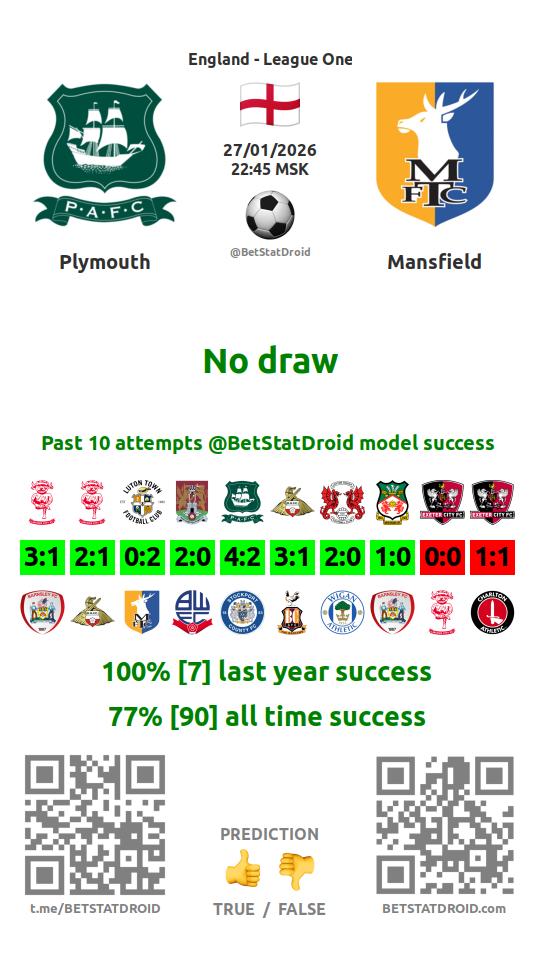 ✔ Plymouth lost under 1,5 goals in each of 5 last games