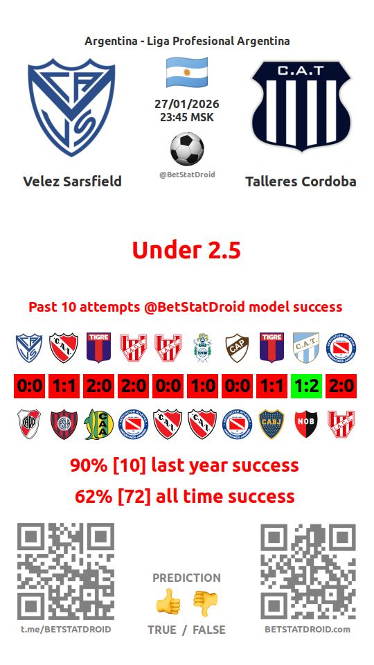 ✔ Velez Sarsfield lost under 2,5 goals in each of 53 last games