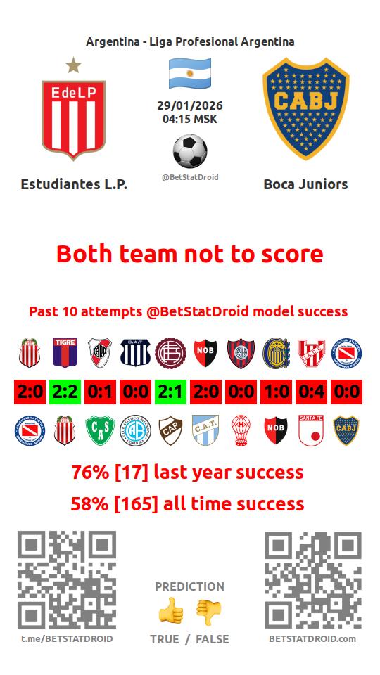 ✔ Boca Juniors scores under 2,5 goals in each of 8 last games