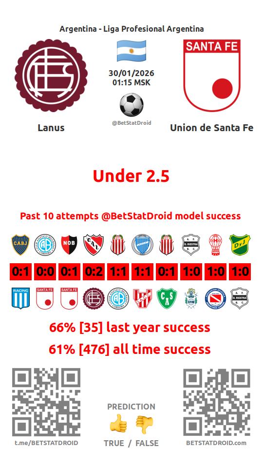 ✔ Lanus lost under 2,5 goals in each of 61 last games