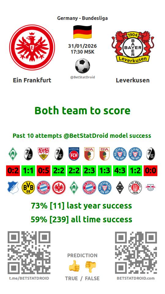 ✔ Ein Frankfurt lost over 2,5 goals in each of 4 last games