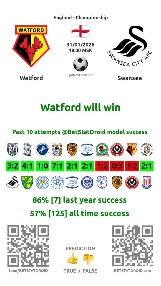 ✔ Watford scores under 1,5 goals in each of 7 last games