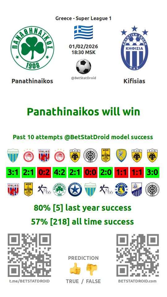 ✔ Panathinaikos scores over 1,5 goals in each of 5 last games