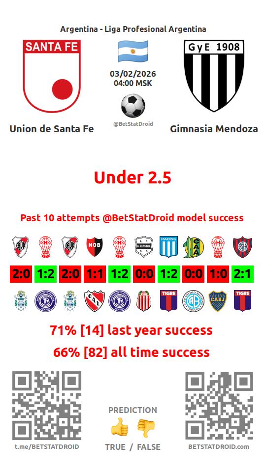 ✔ Union de Santa Fe lost under 2,5 goals in each of 20 last games
