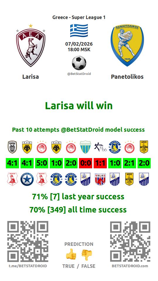 ✔ Larisa lost under 1,5 goals in each of 5 last games
