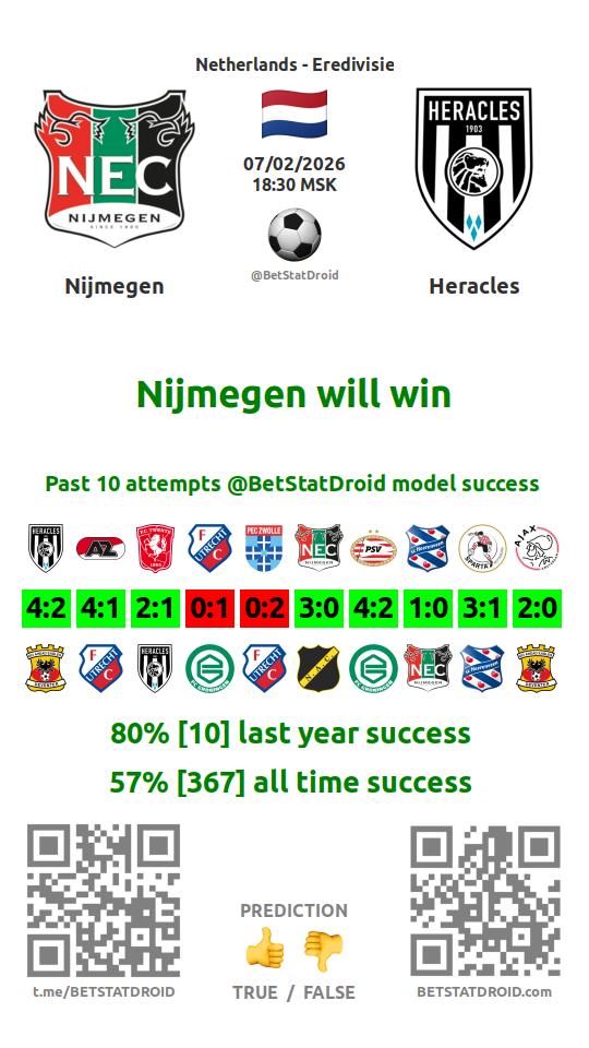 ✔ Nijmegen scores over 1,5 goals in each of 10 last games