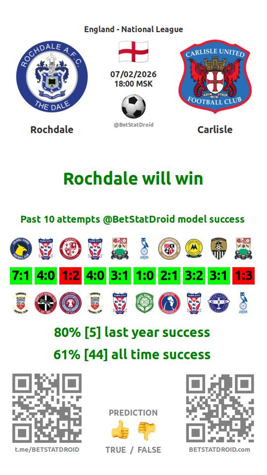 ✔ Rochdale lost under 1,5 goals in each of 5 last games