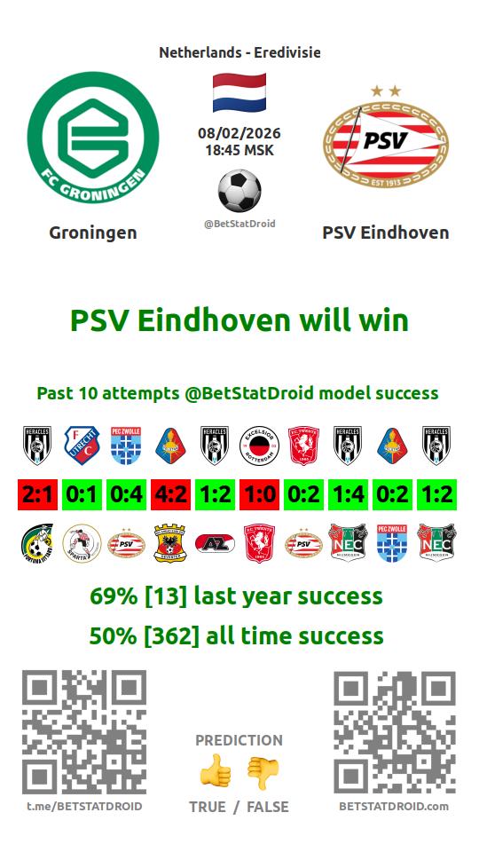 ✔ Groningen lost under 2,5 goals in each of 18 last games