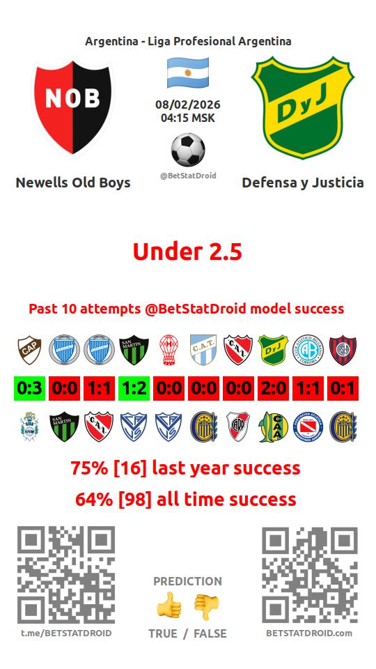 ✔ Newells Old Boys lost under 2,5 goals in each of 20 last games