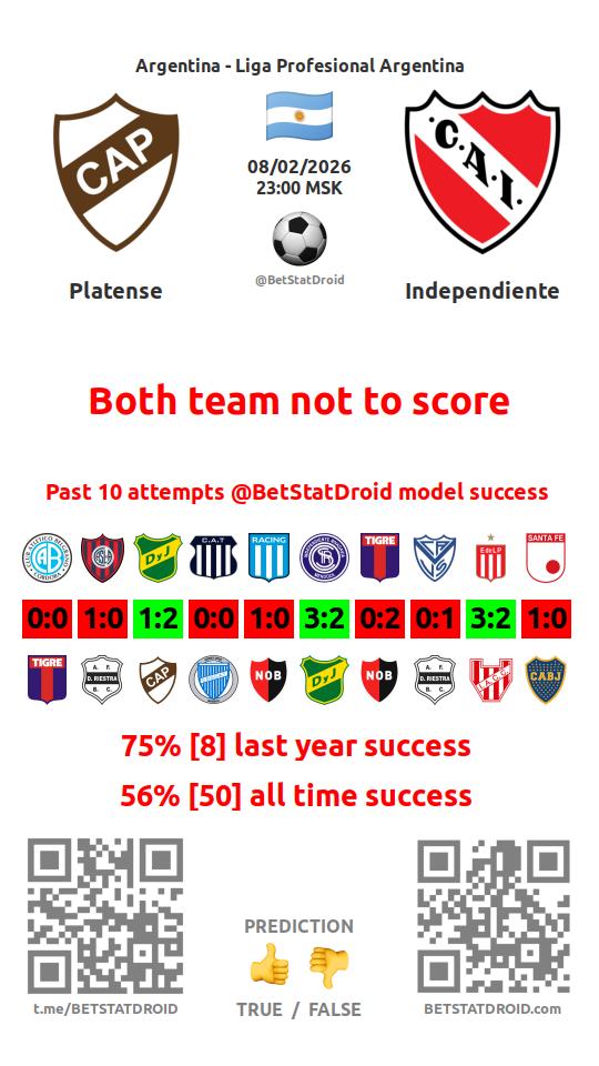 ✔ Platense scores under 2,5 goals in each of 30 last games