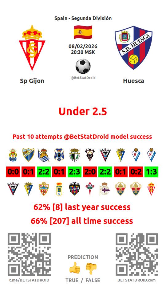 ✔ Sp Gijon scores under 2,5 goals in each of 15 last games