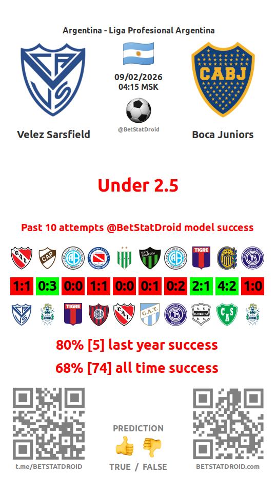 ✔ Velez Sarsfield lost under 2,5 goals in each of 21 last games