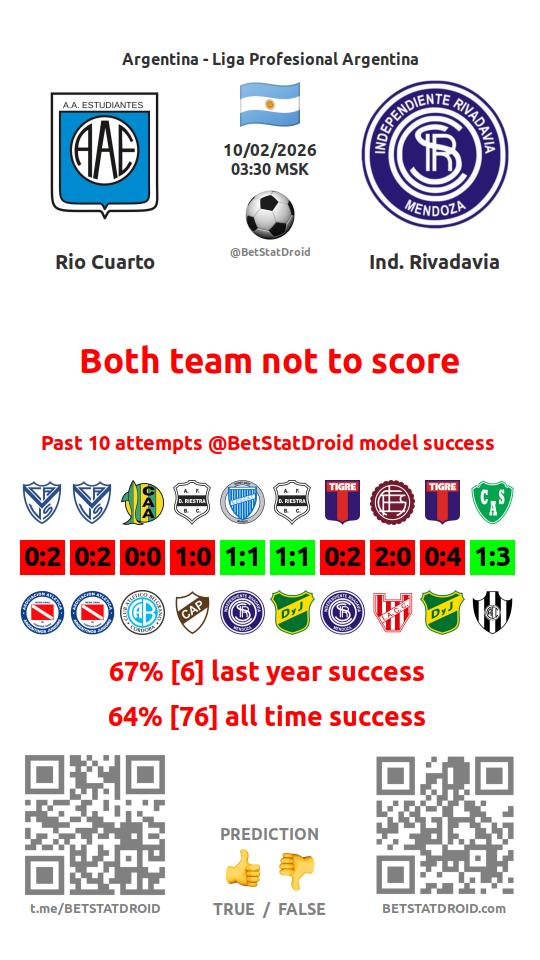 ✔ Ind. Rivadavia scores under 2,5 goals in each of 18 last games
