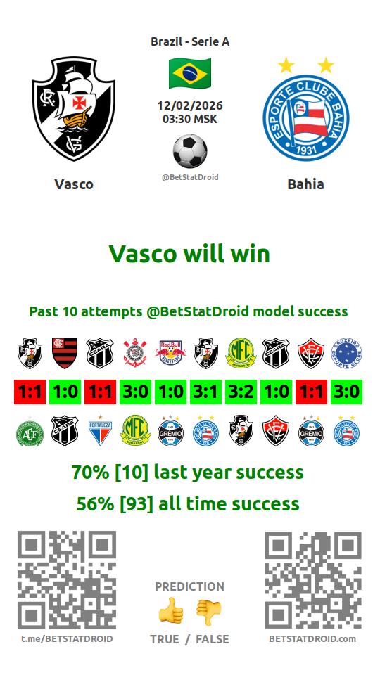 ✔ Vasco scores under 1,5 goals in each of 6 last games