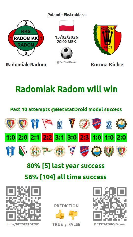 ✔ Radomiak Radom lost under 1,5 goals in each of 6 last games