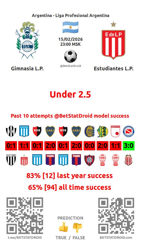 ✔ Gimnasia L.P. lost under 2,5 goals in each of 15 last games