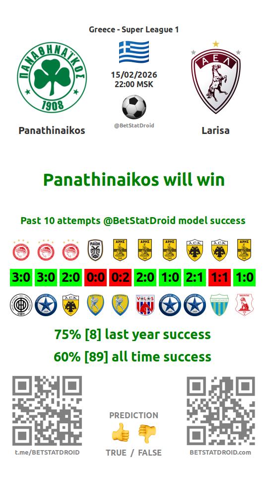✔ Larisa scores under 2,5 goals in each of 13 last games